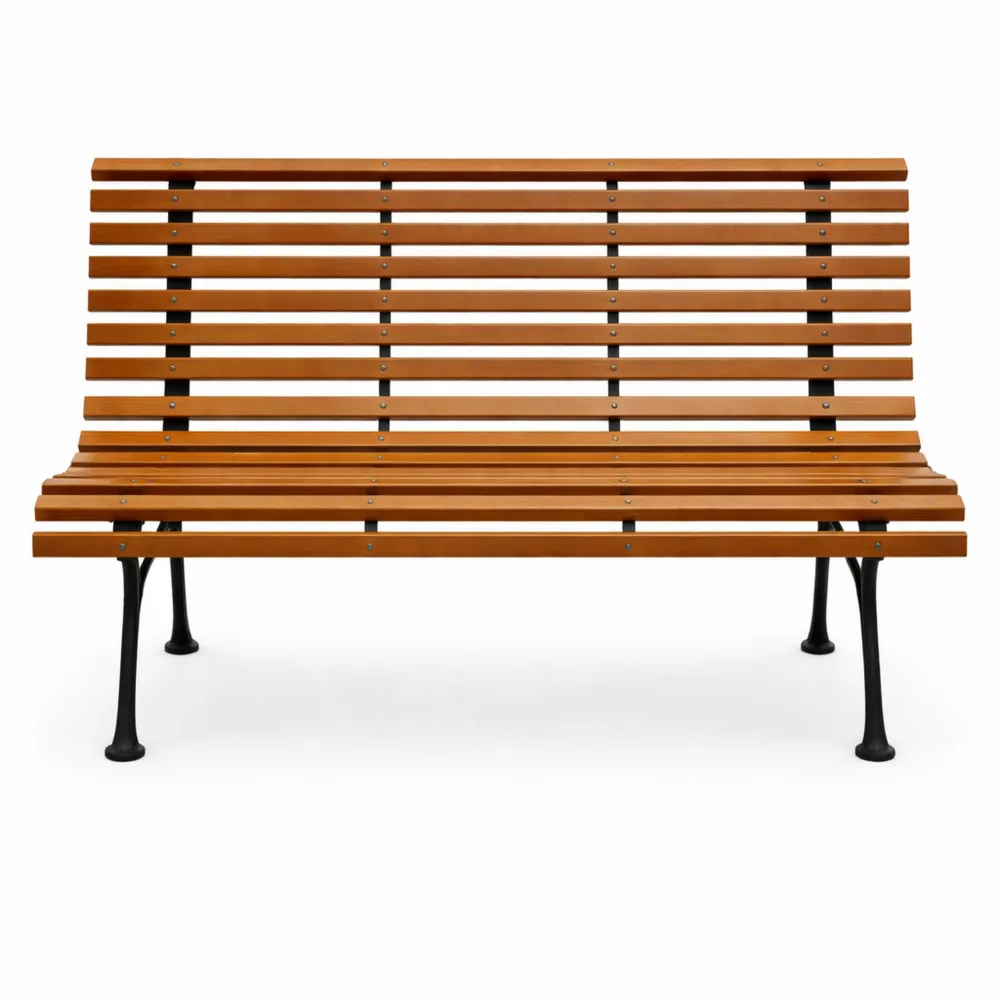 Banc de jardin en bois et fonte, 3 places, 122 cm, marron clair